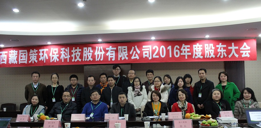 西藏國策環(huán)??萍脊煞萦邢薰?016年度股東大會(huì)于2月9日在成都召開,股東大會(huì)由董事會(huì)秘書楊偉強(qiáng)主持。董事長(zhǎng)兼總經(jīng)理陳鴻、副董事長(zhǎng)范津濤、副總經(jīng)理幸川、財(cái)務(wù)總監(jiān)趙永花、證券部經(jīng)理張麗、監(jiān)事會(huì)主席蘇昌軍等公司董事、監(jiān)事及核心成員出席本次會(huì)議。