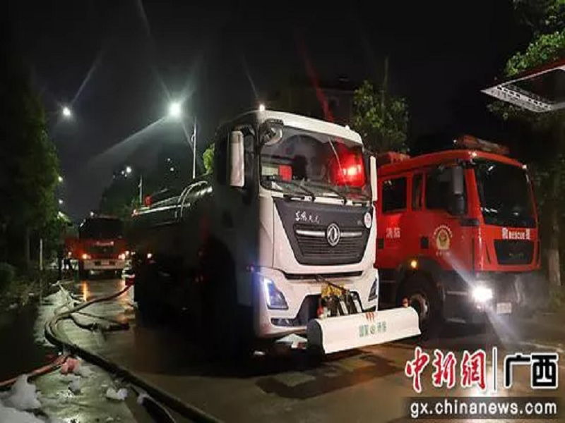 接到緊急通知電話后,東興市城市管理監(jiān)督局第一時間聯(lián)系國策環(huán)保東興分公司急速前往支援滅火。接到通知后,國策環(huán)保東興分公司負(fù)責(zé)人劉桂文即刻調(diào)派2輛環(huán)衛(wèi)灑水車奔赴救火現(xiàn)場。